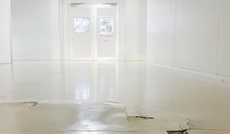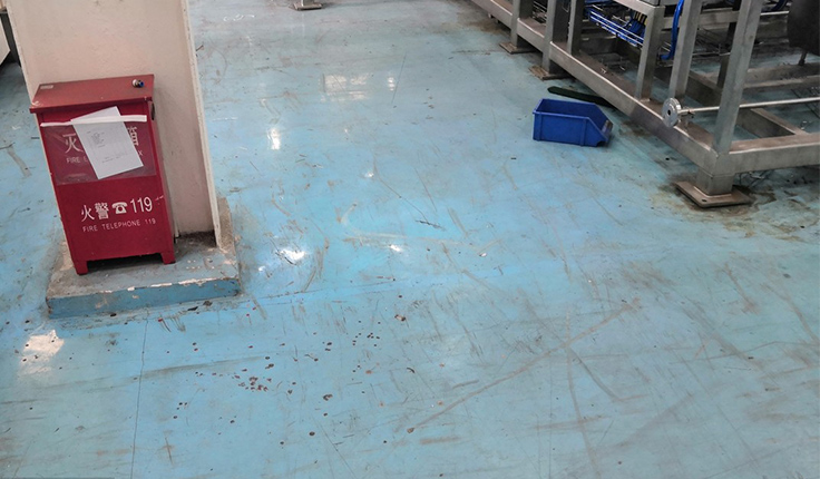 車間地面有很多灰塵和坑凹,